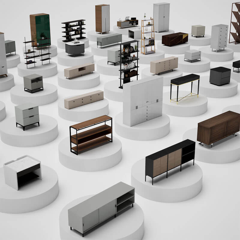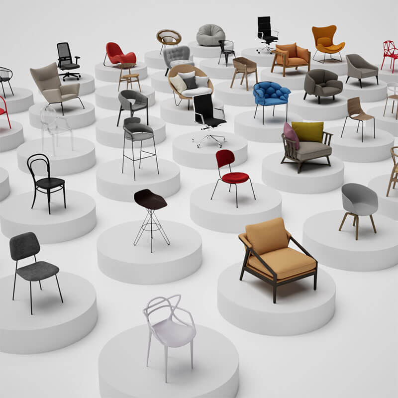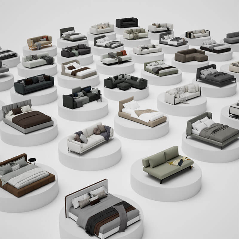 - Interior objects: sofas, beds, tables, lamps, decor items, and more